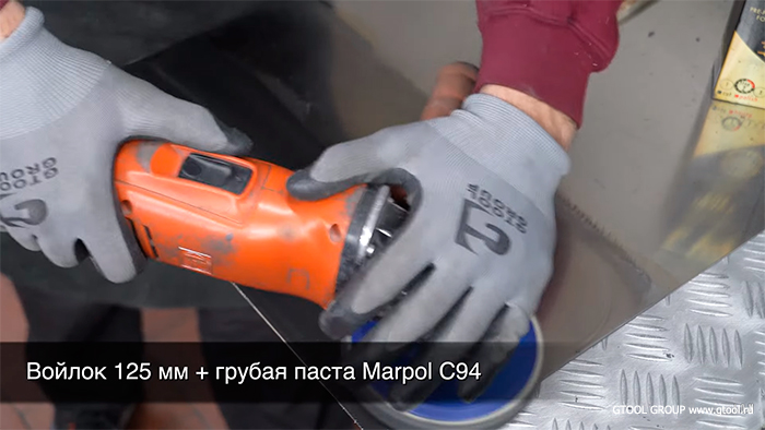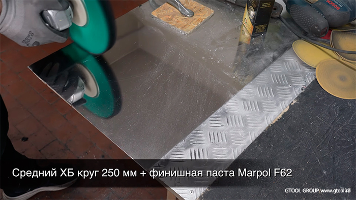 Для исключения разводов от полировки на металле, грубую полировку можно выполнить в два этапа: После ушм, использовать войлок с грубой пастой на эксцентриковой машинке.