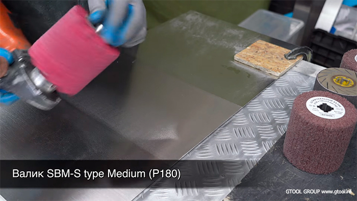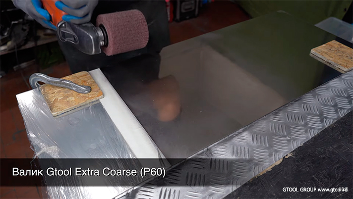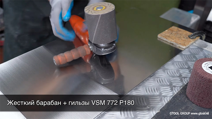 Для поверхности с более глубокими дефектами, сатинирование следует проводить используя шлифовальный барабан с гильзами