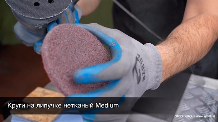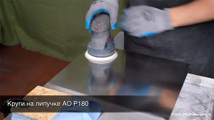 Если поверхность с царапинами и рисками, зернистость выбираем, чтобы перекрывала дефекты (Р120-220) Круги на липучке с АО