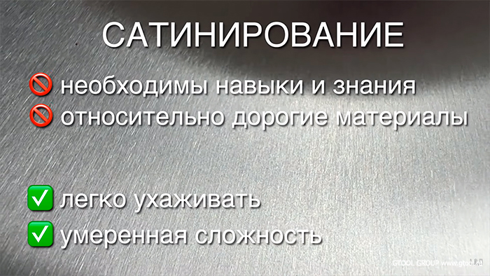 Следующий способ обработки нержавеющей стали - САТИНИРОВАНИЕ