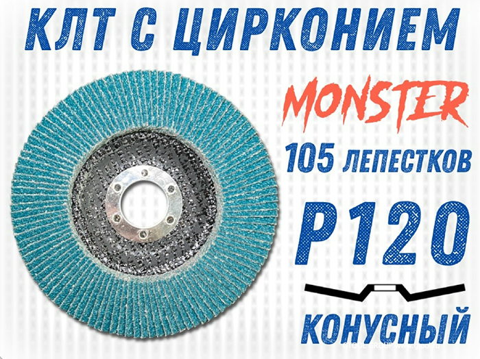 Конусные КЛТ из качественного циркония с увеличенным числом лепестков. 105 лепестков вместо 72 в стандартной серии. Хорошая режущая способность и более высокий ресурс за счет большего числа лепестков. Плюс возможность адаптироваться к обрабатываемой поверхности за счет толстого слоя абразивного полотна. Оптимально для обработки сталей, подходит для нержавейки.