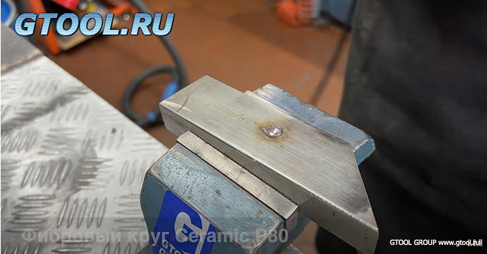 Такую точку легко зачистим с использованием фибрового круга в зерне Р80. будем пользоваться нашим новым кругом из керамики GTOOL CER Р80. Зачистка происходит очень быстро, без перегрева поверхности.