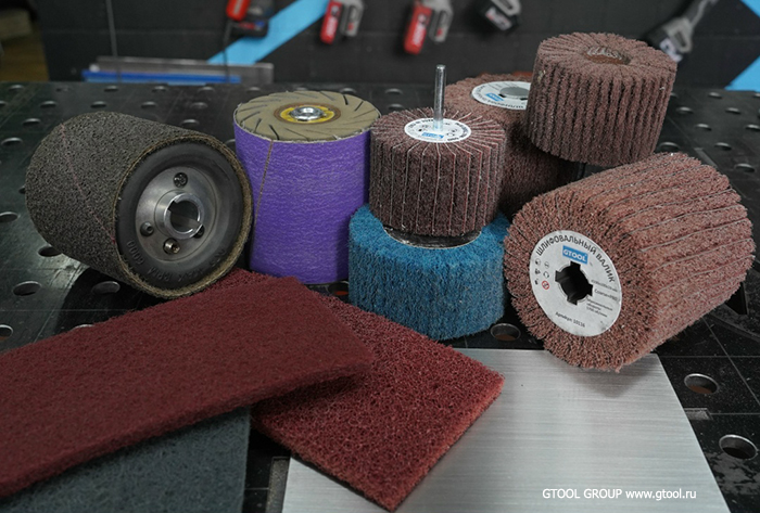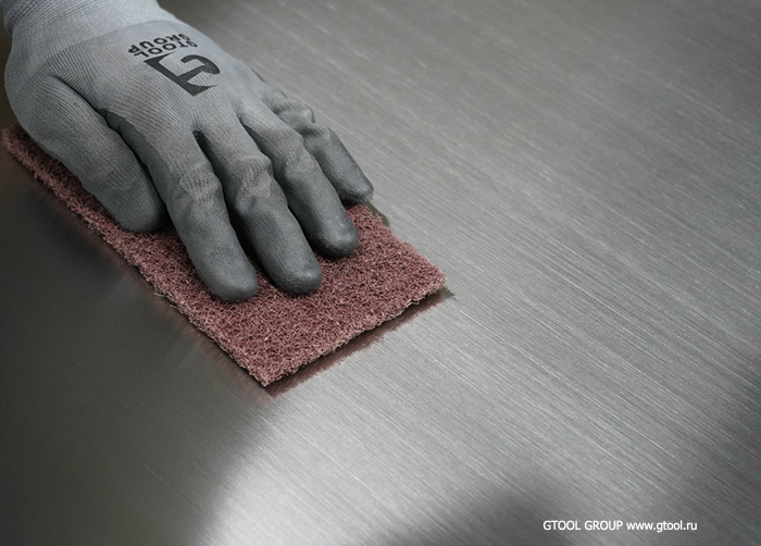 Зернистость материалов подбирается индивидуально, на ваш вкус и заказчика. Но не стесняйтесь брать грубые зерна Р60-80 нетканых листов и валиков. В отличие от классического абразива, нетканые абразивы оставляют куда более мелкую и «гладкую» риску. Зато обработка грубыми зернами существенно быстрее и эффективнее. Или можно после грубых зерен обработать более мелкими при желании, это все равно будет быстрее.
