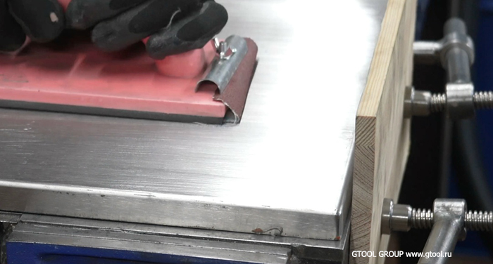 Так же в углах можно использовать и обычную шлифовальную бумагу, если скотбчрайт не может перебить риску.