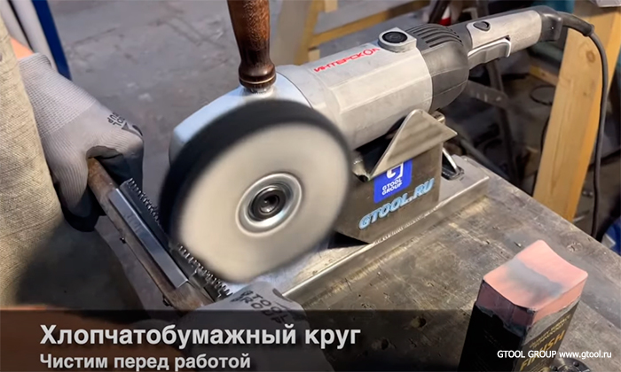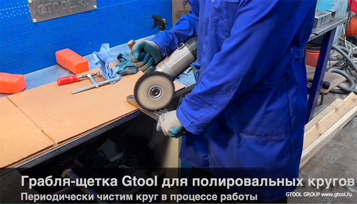 Но для начала круг нужно почистить от остатков пасты, с помощью щетки для чистки полировальных тканевых кругов.