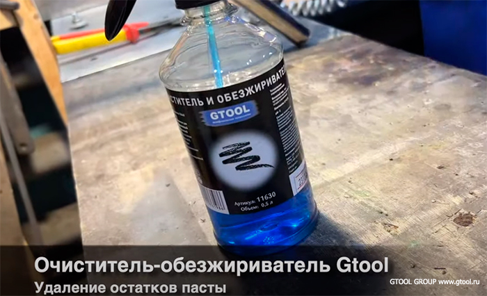После первого этапа полировки удаляем остатки пасты с помощью Очистителя и обезжиривателя Gtool .