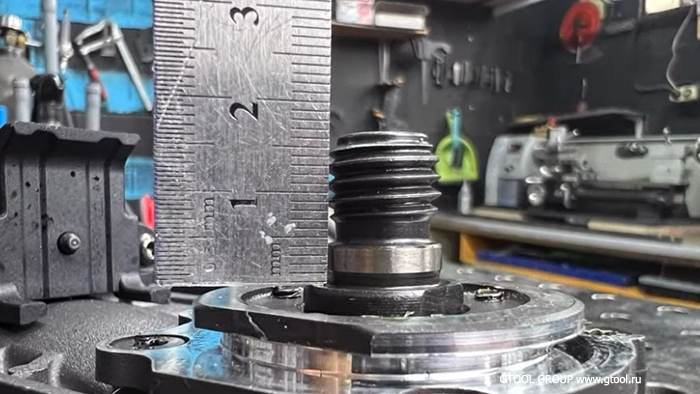 Первое, что бросается в глаза при работе с плоским редуктором – это необходимость снятия крепления кожуха для полноценной работы с 150 мм дисками. Круг вплотную прилегает к выступающему штырю механизма блокировки кожуха, что мешает вращению. Однако это легко решается снятием механизма, что, впрочем, не является проблемой для тех, кто привык работать без кожуха. При этом сама конструкция шпинделя и нижней опорной гайки адаптирована для минимально выступающих частей, компенсируя его небольшую длину.