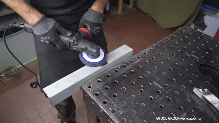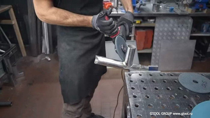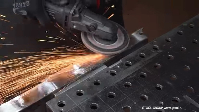 Наиболее ярко преимущества плоского редуктора проявляются при работе в углах и с доводочными кругами. Машинка обеспечивает значительно большую свободу движения и угол взаимодействия, чем стандартные УШМ. Это позволяет удобнее подбираться к сварным швам и другим сложным участкам, не перекладывая инструмент и не меняя его положение. Работа доводочными кругами становится значительно комфортнее, особенно при необходимости обработки под углом, отличным от 90 градусов.