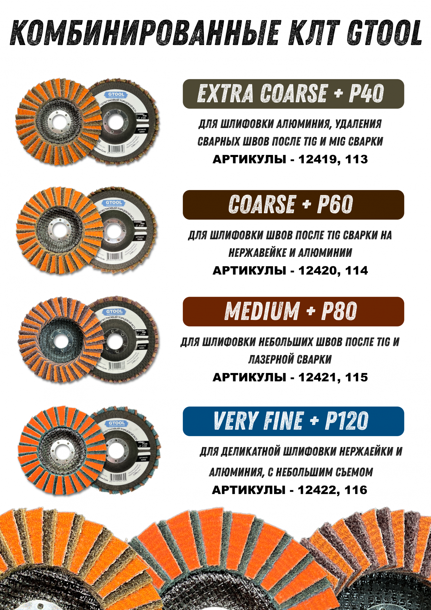 Комбинированный диск GTOOL состоит из двух типов абразивных лепестков: